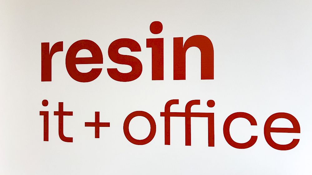 In der Resin Lounge kann man entspannt einen Kaffee genießen, kurz abschalten oder in Ruhe auf einen Termin warten. Das gedruckte Logo vermittelt schon beim Eintreten ein Gefühl von Ruhe und Gastfreundschaft – ein echter Wohlfühlmoment mitten im Arbeitsalltag.