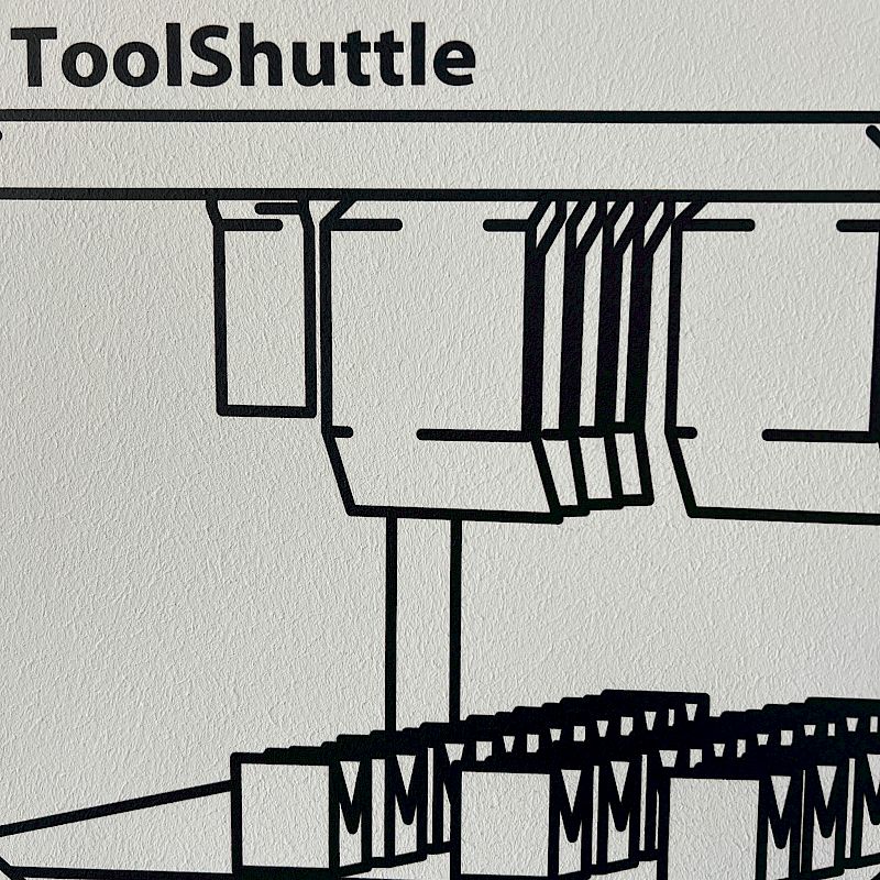 Ein Wanddruck im Format 3,85 × 1,80 Meter, der die Skizze der Maschine und ihre wichtigsten technischen Fakten zeigt – direkt auf die Wand gedruckt, gestochen scharf und exakt ausgerichtet.