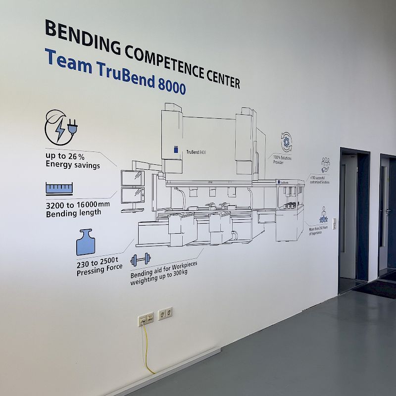 Im neuen Bending Competence Center von TRUMPF in Teningen werden modernste Biegemaschinen präsentiert. Für diesen Ort der Innovation durften wir ein besonderes Gestaltungselement umsetzen: