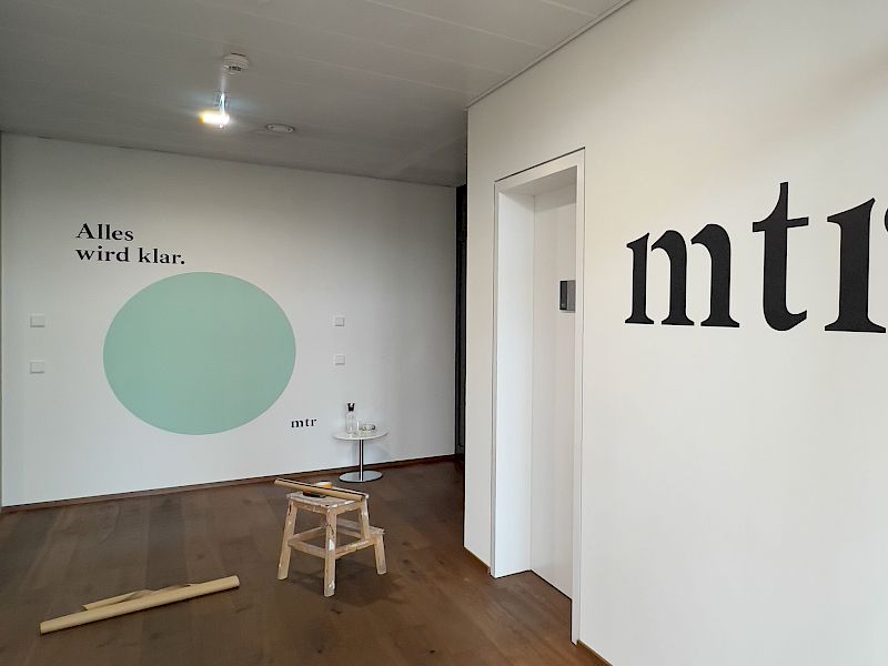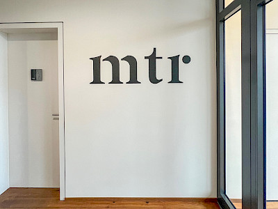Größe: Insgesamt drei Drucke. Ein Logo mit Claim und zwei "mtr" - Schriftzüge